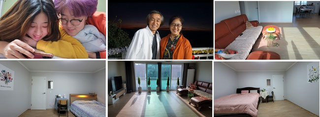 ・家の紹介:ゲストの方がお2人来る場合は広い居間をお貸しする。韓国語教員2級を保持しているため韓国語教育ならびに意思疎通が問題なくできる。家から歩いて1分の場所に空港バス停留所がある。車で買い物などを手助けすることができる。