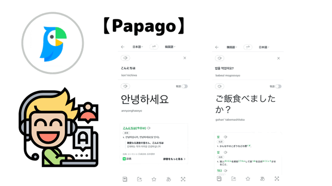 Papagoは「NAVER」がPapagoを運営しています。Papagoは韓国企業が提供する翻訳サービスなので他の翻訳サービスより韓国語の翻訳が自然な気がします。韓国に来たばかりで韓国語がまだ不安な方にも大きな味方になってくれると思います。