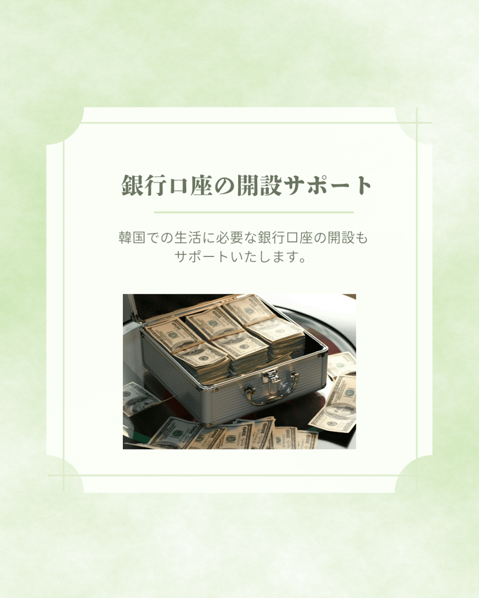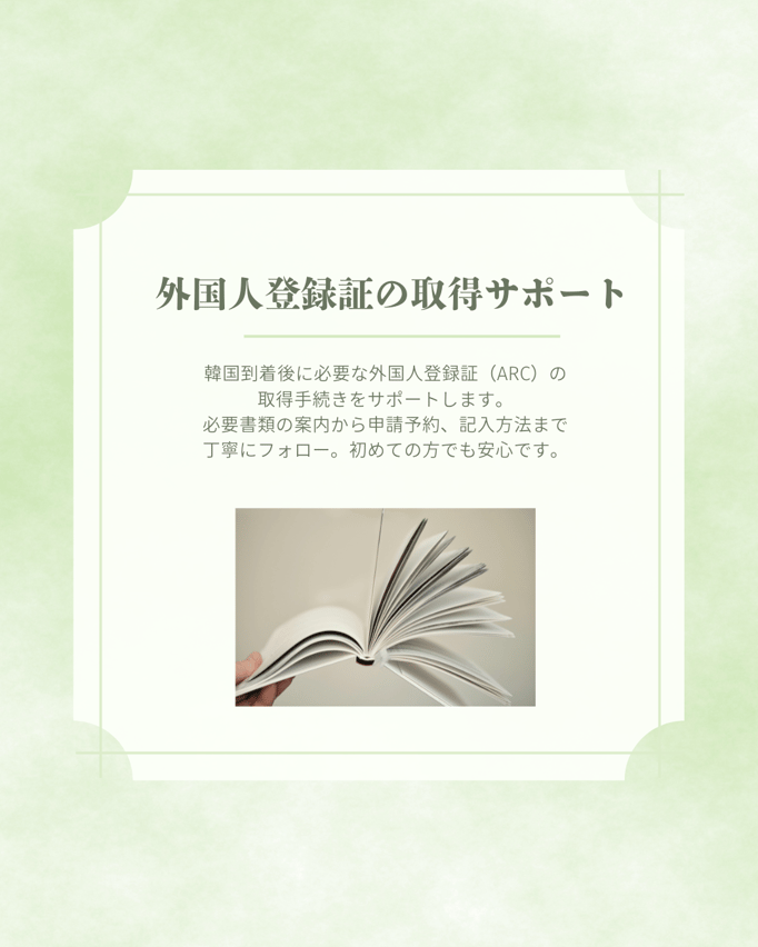 【住居契約書の発行と生活サポート】 家具・家電・Wi-Fi完備、光熱費込みの快適な宿所を手配し、住民登録にも対応可能な正式な「住居契約書」を発行いたします。煩雑な契約手続きはすべて私たちがサポート。渡韓初日から、不安なく自分の城での生活をスタートしていただけます。